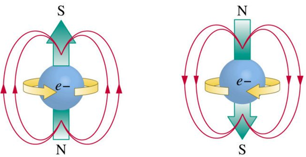 I’m now going to tell you something which is not true. Just like the Earth, electrons spin and they have magnetic poles. This is not surprising because electric and magnetic fields are inextricably connected. If spins, it has to spin about an axis, and any magnetic effect has to have two opposite poles.